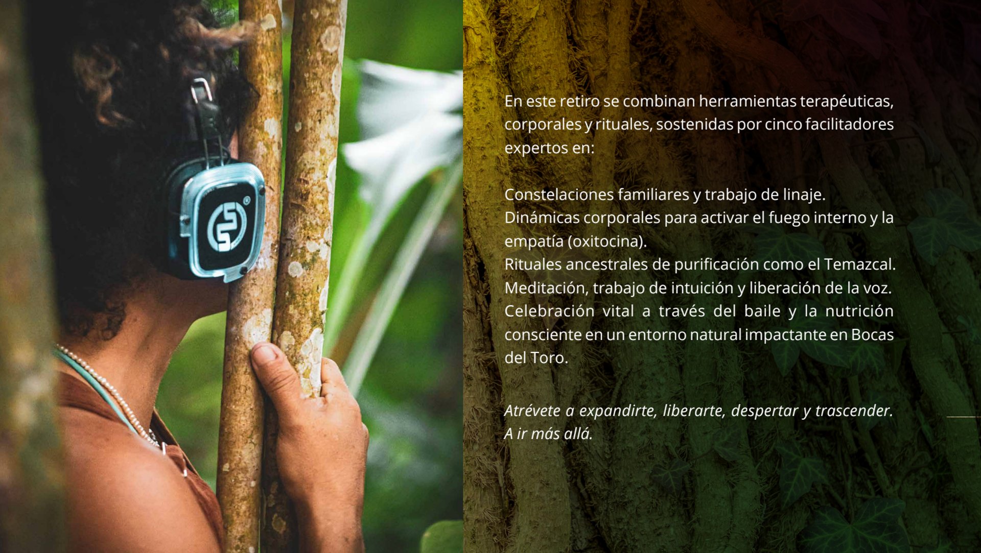 Enfoque: Combina herramientas terapéuticas, corporales y rituales, como constelaciones familiares, dinámicas corporales para la empatía, rituales ancestrales (Temazcal), meditación, liberación de la voz y nutrición consciente.